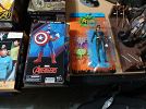 I have lots of collectible action figures from Marvel and DC comics. Bat man, the Joker, Cat Woman. Captain America, Iron Man and more! Also movie action figures. Dracula, The Mummy,Werewolf, Frankenstein, Star Trek and Star Wars, baseball and football, Rock and roll figures, Jim Morrison, The Beatles, yellow submarine figures. Framed Rock and Roll Posters.