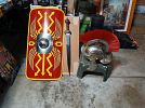 Movie props Including, WW2 helmets, weapons, (Note- weapons do not fire and cannot be made to fire. Roman Legionnaires Gladious (sword) Shield and helmet! Confederate infantry keepe cap, WW2 U.S. Army Air Corp Majors Dress Uniform cap, German officers cap, Original Checkoslovakia Army Helmet.