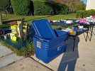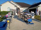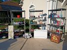 Sony 47” Bravia TV; SunJoe (lightly used) electric pressure washer with new wand and brush attachment; several 50-gal Sterilite covered storage bins; Saris Bones II bike rack; Yankee candle votives and tarts; Pottery Barn metal and glass coffee table; A/V and computer equipment (Yamaha receiver; blu-ray players, Sony DVD changer, external hard drives, 23” monitor, flash drives, and more); CD’s; DVDs; football cards and sports card storage boxes; board games; puzzles; kids blocks and toys; Weber Smoky Joe grill, yard flags; costume jewelry; mens L/XL clothing – good condition!; Men’s Nike and Mizuno sneakers; Ram golf clubs; Wilton pans; queen comforter and bed frame; small storage and misc kitchen/household items. Lots of $1 and 50 cent items. Everything is clean.