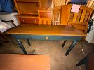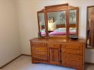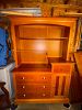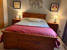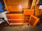 Solid wood queen bedroom set with armoire, full size bed frame and dresser, low twin loft, coffee table, book shelves, and more.