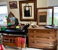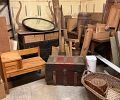 Alder house, Bev Doolittle, Tupperware, Avon, pre- WW2 & Civil War memorabilia, Cast Iron, Sewing Machines, Cameras, Jewelry, Fostoria, Milk Glass, Furs, Antique & Mid-Century furniture, Picture Frames, Vintage Clothing 50’s-90’s, Gardening Galore, Vintage books, Collectible books, children’s books, wood, tools, camping, piano, vintage children’s toys, vintage bikes, ladders, and much more!