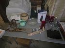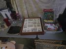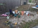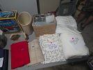 Book, 3 wheel bike dresser set lots of clothes, planter pots, household, purses scarves. Lots more