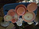 So many great items with several different people selling things..Housewares, designer clothing, shoes and handbags, China, Silverplate, Lalique,Books, Cds, Dvds, collectable mini perfumes, memorabilia, surfboard, linens, makeup supplies, cut crystal, Chinese wool rugs, camera, delftware,vintage destination dish towels, vintage barware, bricabrac, lot's of tchotchkes, too much to list...gonna be fun!