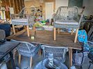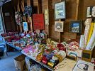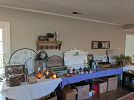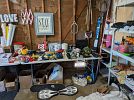 Lovely home and garage full. Furniture, Player Piano, jewelry, coins, glassware, pottery, kitchenware, artwork, electronics, books movies, games, clothing including a beautiful wedding dress, linens, holiday items, pool rafts and toys, garden furniture, gardenware including a fountain, lighting, statuary grill master bbq, fans, ornate iron umbrella stands, garage items including tools, outdoor tent, aluminum ladder and much more. Cash Only. Half off on MOST items on Sunday AFTER 12:00