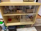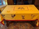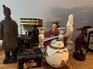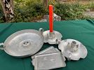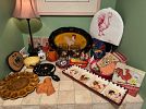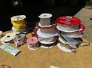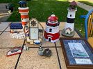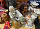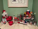 outdoor tools, tuile bicycle rack with key $50 for hitch on car or truck, outdoor chairs, windmill, garden cart, ceramic outdoor animals, Weber BBQ with propane tank and cover $50, snow blower $650, table cloths, china, silver ware, glasses, furniture, chairs, large kitchen table.