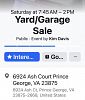 Multi-family event; Items include: power tools (table saw, air compressor, electric trimmers, miter saw, bench grinder, skill saw), tool boxes, garden tools, pots, fishing gear (rods and accessories), crab pots, coolers, golf clubs, Budweiser and Marlboro collector items (lighters, dice, playing cards), playing cards, DVDs, cassettes, cameras and accessories, lamp shades, furniture, mirrors, rugs, bath fixtures (new), vacuums (SHARK, ELECTROLUX), KITCHEN-AID mixer (black), blenders, houseware, glassware, serving ware, dinner ware, home décor, art, holiday décor and much more!