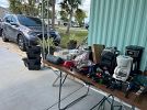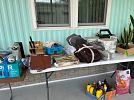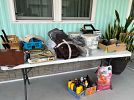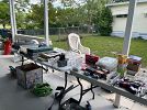 Lots of tools, household items bissell crosswave, gum ball machine, pieces of wood, BBQ grill, saw horses, pressure washer, air compressor, 2 end tables, coffee table & high table, too much to list. Come take a look.