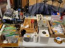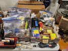 Huge amount of stamping, scrapbooks supplies. CRV001 Cricket machine, woodworking & hand tools. Preowned lighting, electric switches/outlets/plate covers, wire shelving hardware. Primitive bow saws, Vtg toys, iron board & child's toy iron board. New spa/hot tub steps. Young men's & women's tops & jackets, American Eagle, Hollister, Victoria Secret/ Pink. Vtg Oak dresser, repurposed gun display cabinet, sm oak file cabinet, purses, shoes, kitchen, bath & office items