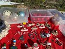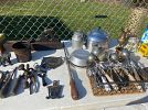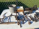 Antiques: tools, soda fountain ice cream scoopers, Old World Xmas ornaments, glassware, tins, canisters, etc.
