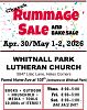 WHITNALL PARK LUTHERAN—STARTING ON THURSDAY this year. 1000s! of donated items; no clothing. Shoes, craft supplies, sewing machines, a whole room full of linens, art, frames; Vintage items, chalkware figures, household, collectibles, dinnerware, appliances, roasters, furniture, jewelry, floral/baskets, party supplies, holiday decor (Christmas Room), toys, games, puzzles, BOOKS, media, albums, super-8 projectors; a few bikes, tools, tvs/screens, sport stuff, outdoor, garden/lawn. Come and see what we have! Posted first photos 4/19/26; more to come. Again this year...our great bakery Thurs & Fri! SATURDAY BAG & HALF PRICE SALE.