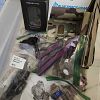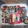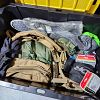 Camping gear, US Air Force, Navy, and Boy Scout patches.