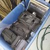 Military surplus bags, pouches, and various field gear.