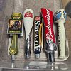 Beer tap handles and pint glasses