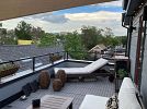 Many large indoor and outdoor furniture items including outdoor sectional sofa, chaise lounge, indoor sofa, RH table and chairs, light fixtures, small items, and more!