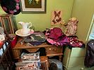 Furniture collectibles Fenton dolls Barbies puzzles kitchen wood items California glass Christmas and holidays vintage clothes vintage hats records books