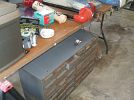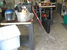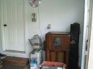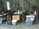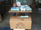 No chain saw Small household appliances(many new), new tools, new air compressor, old Zenith radio, antique ice shaver, small tent, coolers, tons of glassware, fishing gear, vintage motorcycle helmet, metal cabinets,
