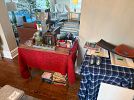 Small refrigerator ($30) collapsible red rocking chairs ($50 each) Igloo rolling ice chest ($40)