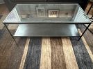 2 arm chairs ($60 for both), (, Crate and Barrel metal and glass coffee table($60) and end table ($30) kingsize bedroom suite (headboard, footboard, mattress and box springs and 2 nightstands (asking $600)
