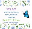 Sale at back of of Church. Lots of New Items. Winter clothes, toys, jewelry and shoes 50% off.