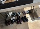 Coffee maker, jack lelane juicer, iron, hair dryer, bookshelf, small side tables, lawn chairs, 2heavy duty try cycles, trailer hitch, portable air conditioner, comforter set, curtains and rods, lots of clothes, size small, jeans size 1. Ladies clothing, boots, shoes, purses, backpacks. Lots of stuff!!