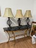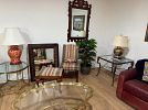 Several brass and glass tables