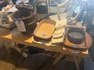 Art teacher of 30 years has a ton of arts and crafts supplies including blank craft totes, gelli plates, Lino-cutters, roving wool, washi tape, encaustic supplies as well as pampered chef kitchen stuff, plus size clothing, cameras, containers, circulation plate, size 10-11 shoes, costume jewelry, scarves, games, tons of books and framed and unframed mixed media art pieces.