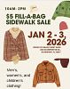 Two days only! Sidewalk sale featuring men’s, Women’s and Children’s Clothing. $5 fill-a-bag! Many nice presorted clothes. Many name brands. Some new with tags.