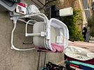 Home decor, accent chairs, floor/table lamps, purses, shoes, drum set, mirrors, dining table set, pull-out/sleeper sofa, massage table, bookshelves, shoe rack, diapers, bassinet, dresses, blouse, kid-size Ford car, kitchen appliances, ottoman, car floor mat
