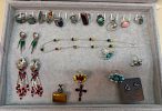 Large assortment of sterling silver jewelry including rings, earrings, necklaces, bracelets as shown in the photos. Many turquoise and Native American authentic & signed pieces. Price ranges for all tastes and styles. This is only a jewelry sale. Will accept only cash payments.