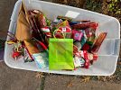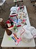 Yard sale! Christmas goods, lights, and ornaments, Fiesta ware, Philosophy brand items, fake flowers, home decor, Halloween decor, large dog crate, and more!