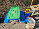 Join us for a yard sale event. Available items include housing air filters MERV-11 16x25x1 and 14x20x1 sizes, ryobi chargers and batteries, walk behind strung trimmer mower legendforce, hedge trimmer ryobi, ryobi reciprocating saw, sunjoe wood chipper , lawn mower, seed spreader, rakes, snow shovel, shovel, massage table with bag, childproofing items, mud kitchen, sand table, ride and scoot bike, walker, crutches, rollator with chair and basket, rectangle table, gaming chair, folding twin to queen bed frame, stair non-slip carpet mats for hardwood floors, diabetic or injection needles, tension curtain rods x 2, locking door knobs x10, and pipe insulation to protect from cold.