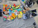 Lots of baby stuff, kitchen equpiment, clothes, other miscellaneous