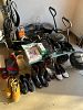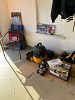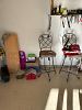 Serger sewing machine, tools, pumps, plumbing supplies, Betty boop, outdoor couch, men’s coats, misc. household items, bar stools.