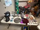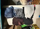 Men’s and women’s clothes, 2 twin size mattresses, Girls shoes, Women’s shoes, some kids misc toys, video games, fabric storage bins, coffee pot, iHome karaoke Bluetooth speaker with microphone, a chair, and a patio sofa. See you there!