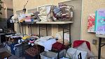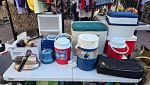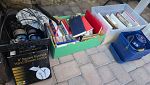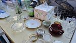 Everything set up in back yard, Huge collection of house hold items. Kitchen items, dishes, pyrex, Crystal and Glassware. Huge collection of costume jewlry and Jewelry making supplies. Lennox Christmas decorations, Winnie the Pooh cookies jar, Men's and women's clothing and shoes, twin, queen and King size linnen, curtains and rods, tools, furniture, beanie babies collectibles, Barrington Bears collectibles, vinyl albums, books, Office supplies, tons of baskets, sound system with speakers, artwork and so much more.