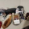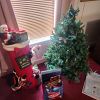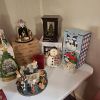 Lots of Christmas decorations, golf travel bag.