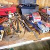 Tools, Vintage tools, lawn & garden equipment tool boxes, wood jaw clamps, pony metal clamps, craftsman wrenches, SAE and Metric, pipe wrenches, screw drivers, pliers, bench vise, Ryobi isolating spindle sander, ratchet drives, pedestal fans, electric leaf blowers, shop vacs, 12 speed drill press, extension cords, 100 grit sandpaper, Brad point drill bits, HSS drill bits.