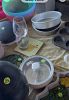 kitchen items; decorations; womans clothes; shoes; books; cookbooks; Christmas decorations; serving dishes; wall art; candles; curtain rods; shower curtains; stuffed animals; canning tools; gold charger plates; food storage; food molds for baking; coffee press; bakeware; glasses; vases and much more