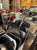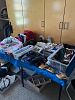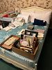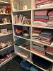 Sewing cabinet, ladies clothing size M, ladies shoes, bags, hankies, scarves, hats, SIX Roombas!, bed, bath and table linens, men's clothing, shoes, belts, hats, ties, original art, paraffin bath, pine armoire and matching dresser w/mirror and two night stands, BOOKS, book cases, so much stationery, massage mat, three drawer lateral file cabinet, bookcases, hard rock maple china cabinet, home office supplies, drafting table,