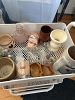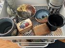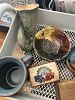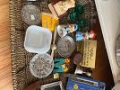 Pottery, antiques, purses, bags, books, glassware, coffee mugs. Bikes & baseball gloves. Frisbees. Gardening supplies, pet items. Neabot. grooming table. Baseball & football cards. Chainsaw, pavers & lots of tools. Computer parts. Old phones. Office supplies. Disney.