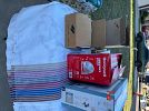 Items for sale include furniture items, collectible dolls, kitchen items, adult and children clothes and limited tools.