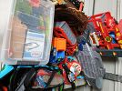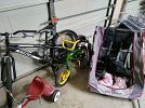 Lots of kid stuff: clothes, toys, puzzles, books, more toys; adult clothes & shoes; keyboard & stand; trampoline safety net; toaster; home air filter; lots of NEW men's dress shirts, soccer cleats; bicycles & bike trailer; vacuum; new duvet cover & shams; books; and a lot more!