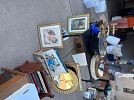 Lots of home decor, artwork, wall decor, small shelves, bookcase, coffee table, side tables, picture frames, books, planter pots, kitchen tools, plates, dishes, glassware, baskets, vases, board games, card games, bath towels, queen sheet sets, pillowcases, decorative pillows, LOTS of women’s clothing and men’s clothing, shirts, pants, jackets, dresses, skirts, shoes