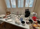 Additional items available at this Estate Sale include: Herend figurines, luggage, books, Ethan Allen Server/Buffet with display cabinet, queen size 4-poster bed, table lamps, chairs, sofa, televisions, television/media console, housewares, kitchenware, small appliances, home decor, artwork, crystal chandelier, women’s clothing, shoes, handbags, costume jewelry, Whirlpool front-loading clothes washer on storage pedestal, Maytag dryer and so much more.