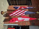 A LARGE variety of home, decorative and office items for sale, as well as camping and scuba diving equipment. This includes filing cabinets, office desk and chairs, Cuisinart electric skillet, single serve coffee maker, Stetson hats, leather jackets, bar stools, American flag, bookshelf, motorcycle helmets and gear, vintage typewriter, authenticated sporting memorabilia, collectible G I Joe boxed figurines, Christmas and Halloween decorations, 8 piece China set, Wedgewood collectible plates....and much more!