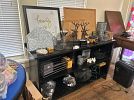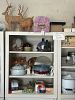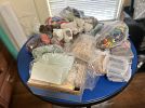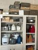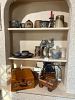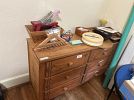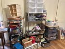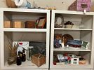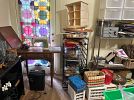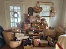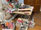 Furniture, armoires, wooden rocking chairs, mini rocking chairs, Mexican pottery, vintage baskets, fine china, dishes, dressers, antiques, craft supplies, tools, plastic storage boxes, vintage toolboxes, sewing machines, sewing supplies, sewing machine parts, Putnam dyes display case with dyes, glass coffee table, desk, shelves, fabric, yarn, antique Sasha doll, antique fishing pole, kitchen utensils, kitchen appliances, Mexican art, African statues, Mexican statues, Mexican tree of life candle holder, so much more!