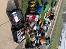 lot of electronics tools, random miscellaneous things, TV fans, speakers, chargers, some new, some used