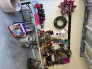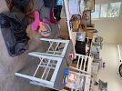 Furniture, console table, coffee table, baby bed, large mirror, bookcase, vintage Singer sewing machine, power tools, gardening tools and equipment, portable AC, pressure washer, vacuum cleaner, home decor, household items, bar stools, glassware, dinnerware, holiday decorations, sailing pictures, lamps, pet carrier, litter box, baskets, flower arrangements, and so much more!
