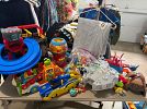 Patio umbrella, new Amish poly umbrella base, floral wreaths, home decor & holiday decor, kitchen items, jewelry, jewelry box, toddler toys, books, purses, shoes, men’s ties, large garden flags, computer monitor, lamps, garden items, bag chairs, golf balls, bottle warmer & drying rack, men’s & plus women’s clothes, Thomas Kincaid framed Christmas print, pictures & shells and lots more.