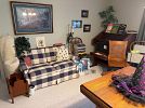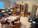 Beautiful fine dressed felt-mounted Michigan Lynx from 1900 ~~ trinket boxes from around the world ~~ Civil War original publication & historical books ~~ crafting supplies & greenery ~~ Holiday decor of all shapes and sizes ~~ linens ~~ Women's clothing, shoes, furs, purses, wedding dress, hats & jewelry. ~~ rattan loveseat, chair and storage ottoman ~~ Ethan Allen dining outfit (table opens up to 8'), china cabinet and coordinating flip to open server. ~~ oak entertainment center ~~ Ethan Allen loveseat ~~ oak bookcase ~~ Lowrey Organ ~~ vintage solid top farm table with 4 hidden pop-up leaves ~~ Federal / Depression glass tea sets in many colors ~~ large pewter assortment ~~ Lenox China ~~ vintage desk ~~ Sherrill 4 seat chaise lounge sofa ~~ swivel cane back desk chair ~~ French ladder-back chairs & 2-toned round to oval table set ~~ wooden chairs ~~ Vintage EA oriental-inspired area rug ~~ bird accented metal twin headboards ~~ Antique Steamer Trunk ~~ twin mattress/boxsprings ~~ Amazing selection of fur/feathers/and other items for Fly Fishing ~~ scatter rugs ~~ Records ~~ wheelchair and mobility aids ~~ Collectibles ~~ housewares. Garage space is filled with tools, metal shelving, fishing, workroom items, gardening, outdoor chairs, household cleanings products...and more.